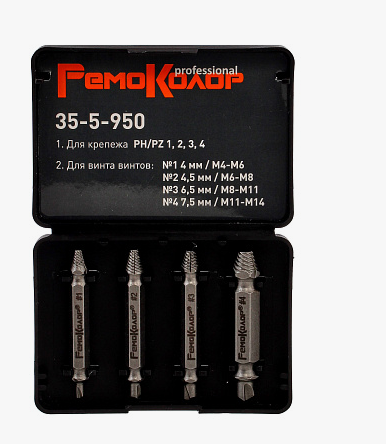 Набор экстракторов для шурупов и винтов РемоКолор (4 шт.) двусторонние