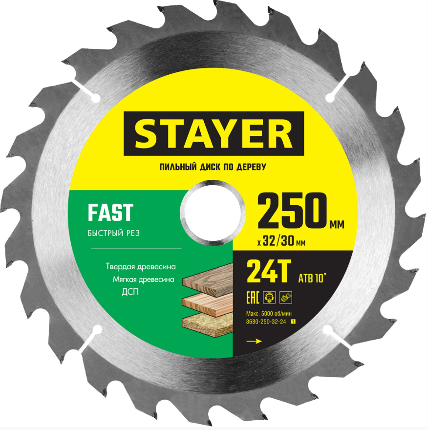 Диск пильный STAYER MASTER "FAST-Line" по дереву, 250x32/30 мм, 24Т