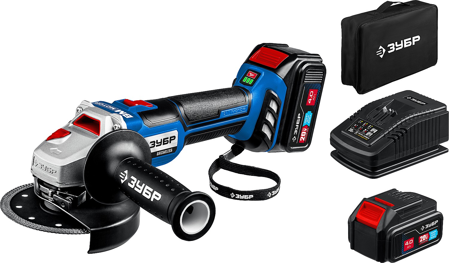 Аккумуляторная УШМ ЗУБР AB-125-42 (20В, бесщеточная, 2 АКБ (4Ач), сумка)