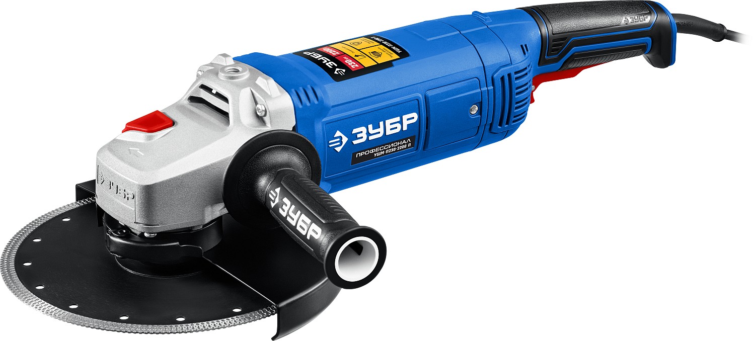 Машина шлифовальная угловая ЗУБР ПРОФИ УШМ-П230-2200 П(2200 Вт, 6600 об/мин, d=230мм)