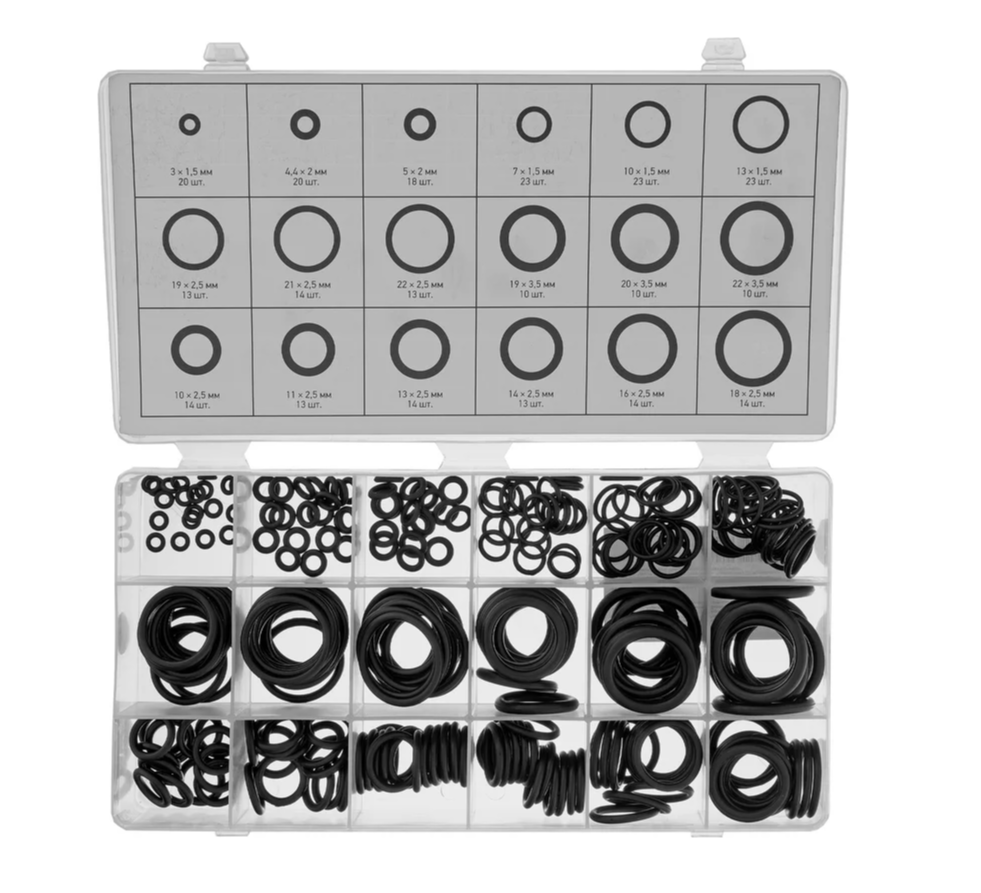 Набор Сибртех 47598 состоит из резиновых уплотнительных прокладок с наружным диаметром от 3 до 22 мм и используется для создания герметичных конструкций. Позволяет решать широкий спектр задач, т. к. включает кольца наиболее часто встречающихся размеров. Прокладки используют для сантехнических и других ремонтных работ, а также в качестве уплотнительных резинок для автомобиля.