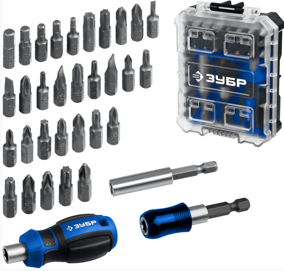 Набор головок и бит с трещоткой ЗУБР Компакт, 34 предмета