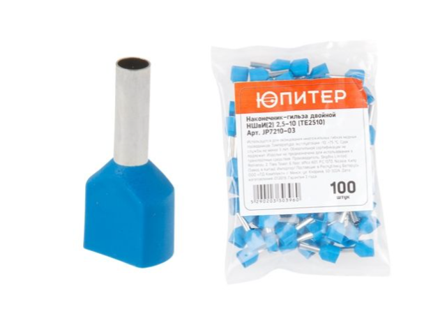 Наконечник-гильза двойной НШвИ(2) 2,5-10 (TE2510) 1 ШТ