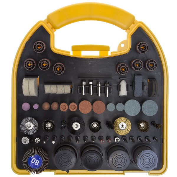 Включает 186 предметов к гравировальным машинам для выполнения работ любой сложности. Содержит большой выбор насадок разной зернистости и формы для высокоточных работ по резке, шлифовке, полировке металла, пластика, древесины и других материалов. Предусмотрено место для гравера. Упаковка - пластиковый кейс. Диаметр хвостовика мини-насадок: 3,2 мм.
