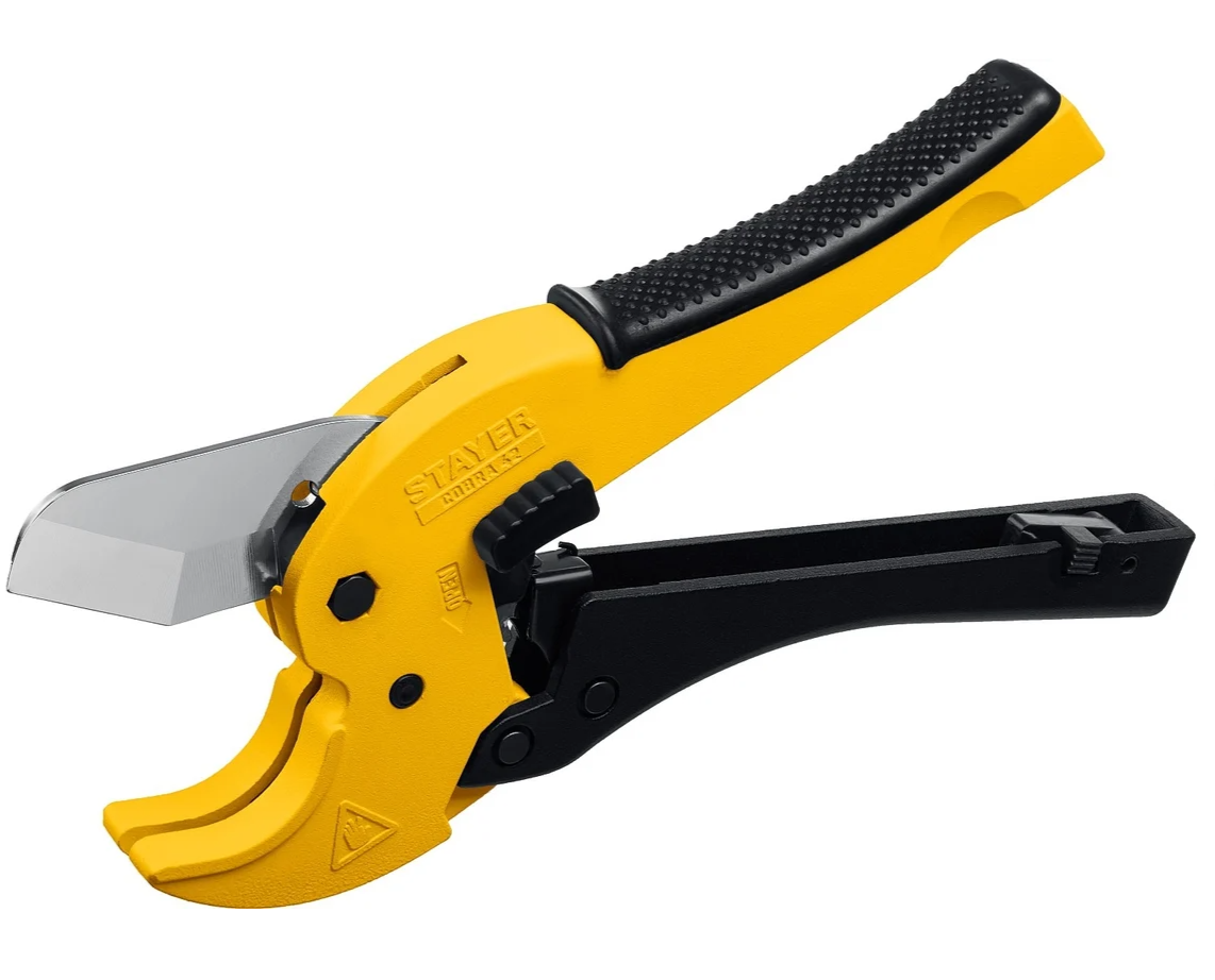 Труборез по металлопластиковым и пластиковым трубам STAYER 23375-42_z01, предназначен для разрезания различного типа пластиковых и металлопластиковых труб при монтаже водопроводных и отопительных систем. Легкий и прочный корпус изготовлен из алюминиевого сплава. Особый храповый механизм для работы одной рукой без затрачивания особых усилий. Быстрый возврат лезвия в исходной положение отжатием нижней рукоятки. Лезвие c V-образным острием предотвращает растрескивание труб из хрупкого пластика. Материал труб пластиковые (полимерные) трубы: PE, PP, PU, PEX, VPE, CPVC, PVC, PVDF, металлопластиковые трубы: PEX-AL-PEX, гибкие шланги, резиновые трубы.