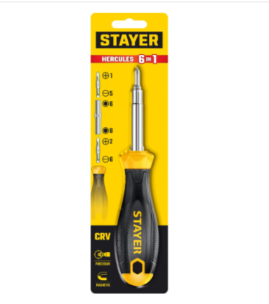 Отвертка STAYER с двухсторонними стержнями, 6 в 1