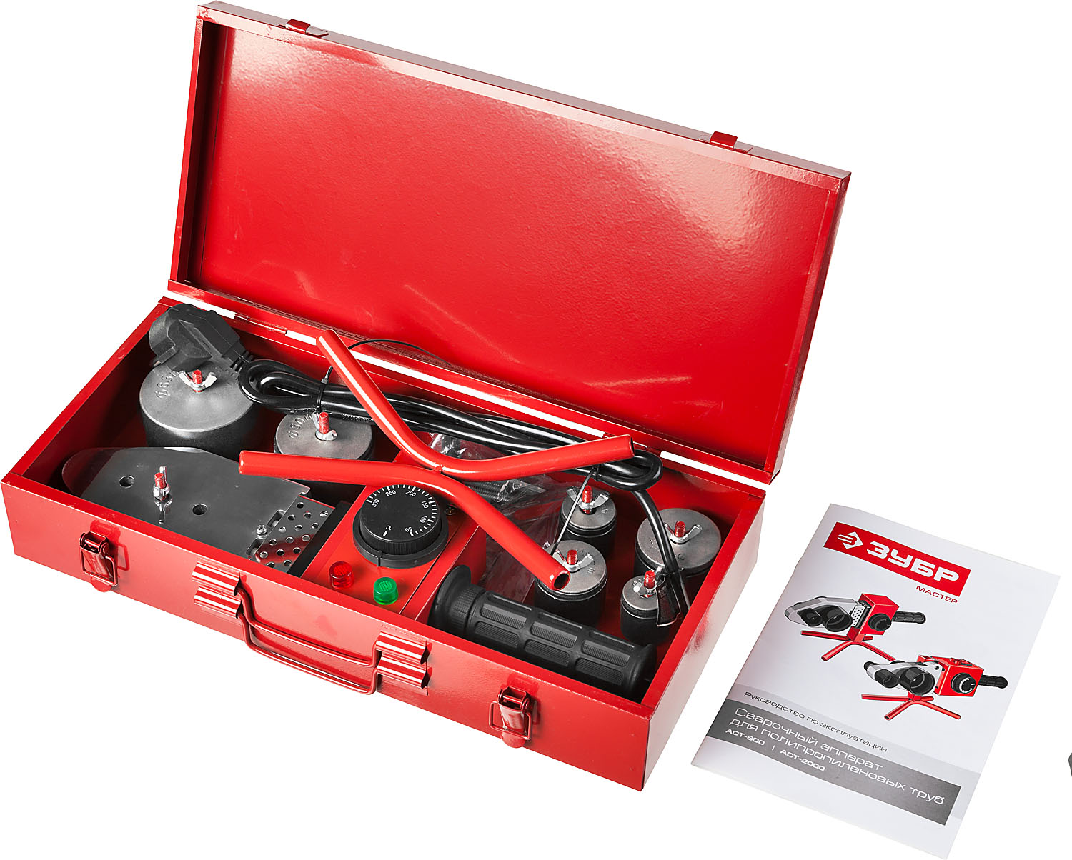 Паяльник для полипропиленовых труб ЗУБР ACT-800 (0,8 кВт, 6 насадок, мет. кейс)