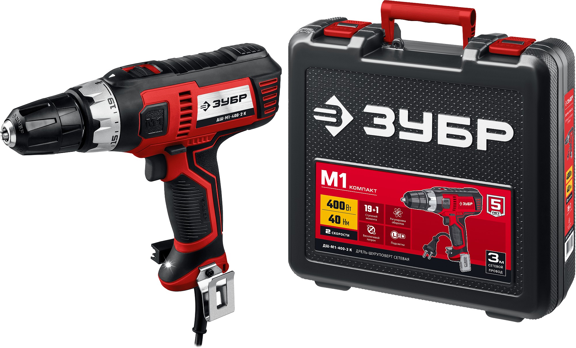 Сетевой шуруповерт ЗУБР ДШ-М1-400-2 (400Вт, 0-450/0-1800 об/мин, 40 Н/м)