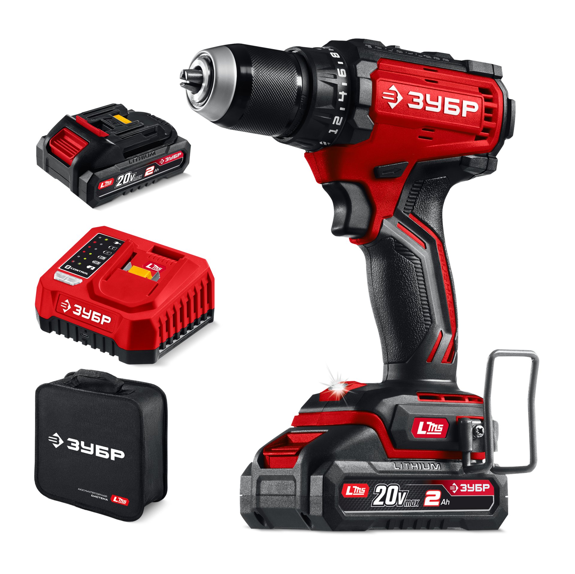 Аккумуляторный бесщеточный шуруповерт ЗУБР ДБ-65-22 (20В, 2.0 А/ч, 65 Нм, сумка)