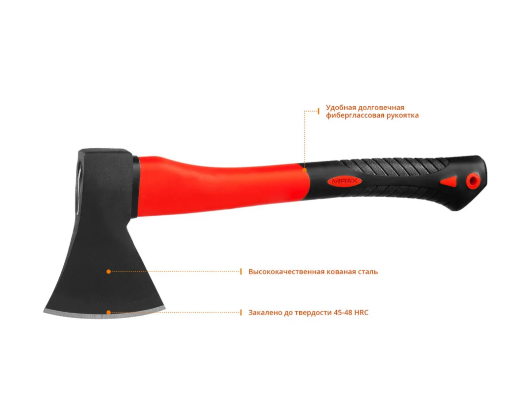 Топор кованый MIRAX с фиберглассовой ручкой, 0,6 кг